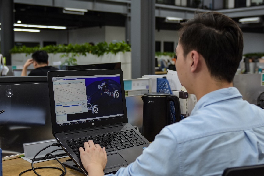 正在进行动力学仿真分析的天际汽车底盘工程师