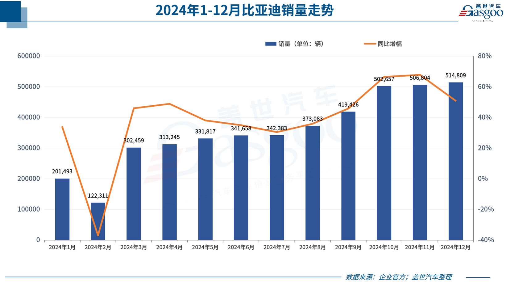 今年10月,比亚迪首次交出了破50万辆的月销成绩,并在11月和12月,把单月销量稳定在了50万辆。