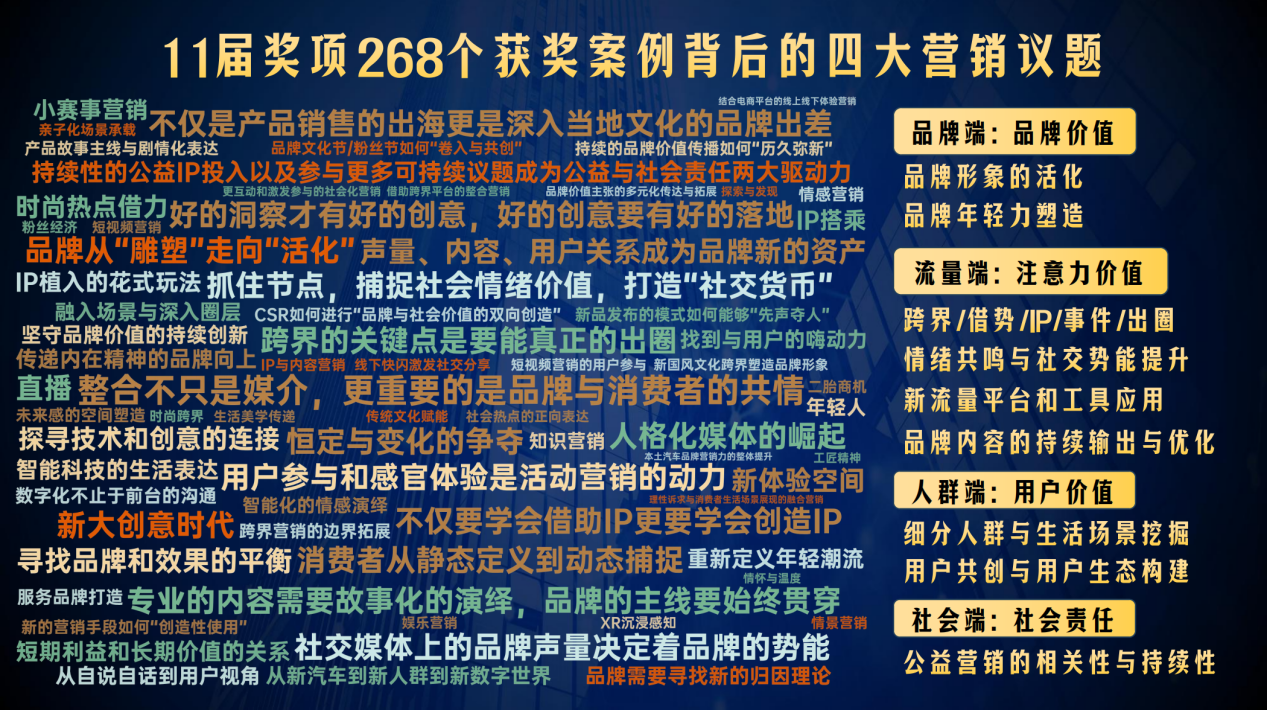 针对过去10年获得金轩奖的案例,肖明超作为趋势营销专家,总结了它们万变不离其宗背后的四个基本议题。