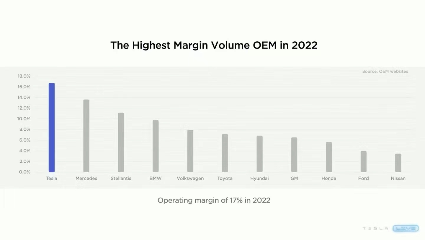 特斯拉营业利润率遥遥领先;图片来源:特斯拉