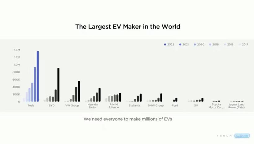 当前除了比亚迪,全球没有哪家汽车制造商的电动汽车产量能够接近特斯拉。虽然特斯拉只有少数几款车型,但其高产量意味着无与伦比的规模经济。随着制造技术的创新,从整车结构到更简单的电池,特斯拉一直在降低成本。