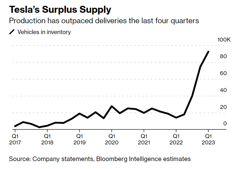此前特斯拉公布,第一季度其汽车库存可供销售15天,根据行业标准这一水平相对健康。但如果从其汽车库存的增长趋势来看,前景并不乐观,因为即使在最近的降价大促之后,特斯拉汽车库存仍处于疫情开始以来的最高水平。