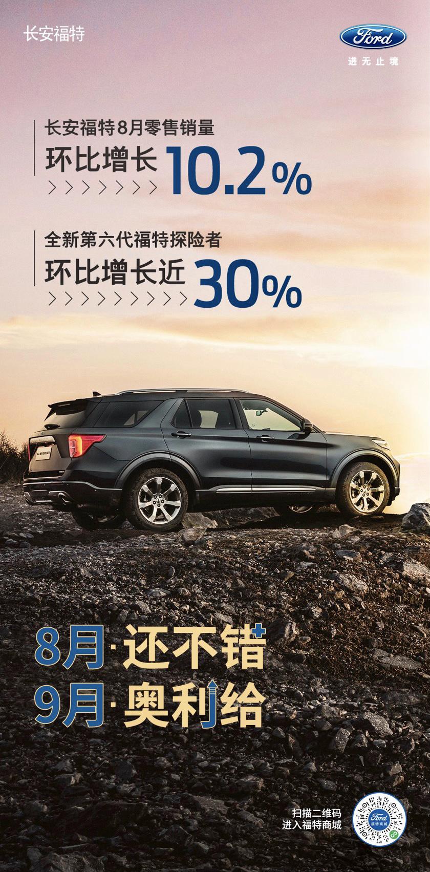 长安福特8月零售环比增长10.2%,硬核新品探险者、锐际成为亮点