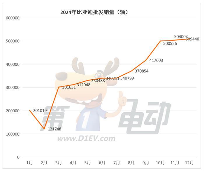 比亚迪2024全年乘用车销量达到425万辆,同比增长41%,已经连续3年夺冠。其中,纯电动车全年销量达到176万辆。2024年比亚迪全年销售目标约为360万辆,其已经超额完成目标销量的18.67%。