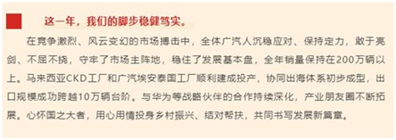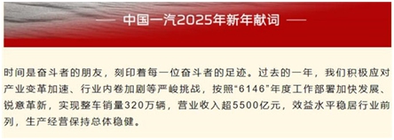 大集团方面,中国一汽2024年实现整车销量320万辆,营业收入超5500亿元,效益水平稳居行业前列,生产经营保持总体稳健。过去一年,“红旗”跃上40万辆台阶,“解放”中重卡终端份额保持国内第一,“奔腾”销量创近10年新高,一汽-大众、一汽丰田两家合资车企经营稳健,自主品牌、新能源、海外销量均大幅增长,生态板块持续做优,现代汽车产业链供应链更加完善。