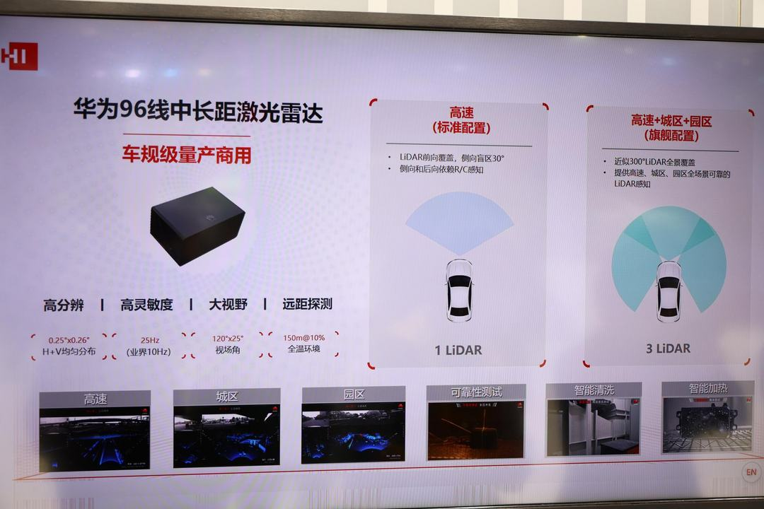 我们推测该车所搭载的激光雷达,大概率为华为96线中长距激光雷达。目前,极狐阿尔法S HI版、阿维塔11、哪吒S、沙龙机甲龙等多款车型均采用华为的激光雷达。华为话语权最多的AITO品牌,自然是要安排上华为的激光雷达,提高智能驾驶能力。