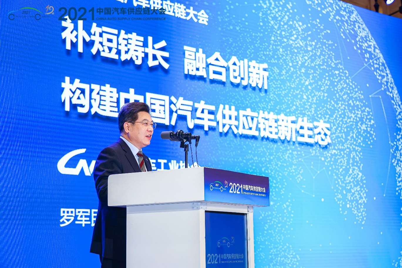 2021年10月15日-16日,由中国汽车工业协会、重庆两江新区管理委员会联合主办的“2021中国汽车供应链大会”在重庆举办,长安汽车、地平线作为官方合作伙伴全力支持本次大会。本届供应链大会主题为“补短铸长、融合创新——构建中国汽车供应链新生态”,共同探讨产业政策,交流分享技术,研判产业趋势,展示创新成果,旨在促进产业国内国际互动,凝聚产业链条上下齐心,共谋产业协同发展之路。其中,在10月15日上午举办的大会论坛上,中国汽车工业协会副秘书长罗军民发表以《补短铸长 融合创新——构建中国汽车供应链新生态》为题的精彩演讲。以下内容为现场演讲实录:
